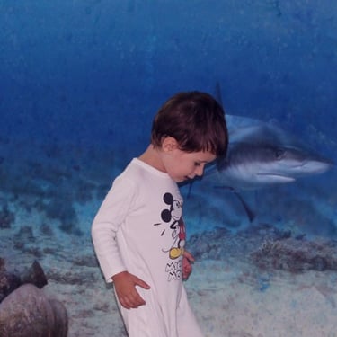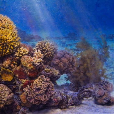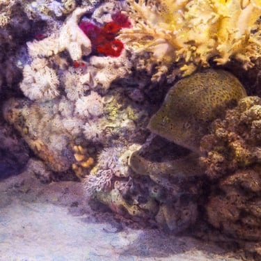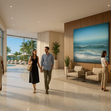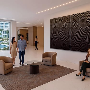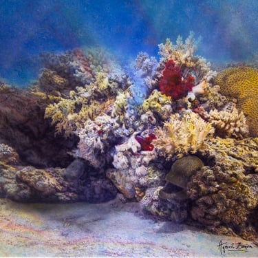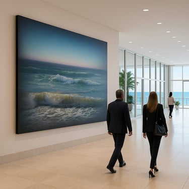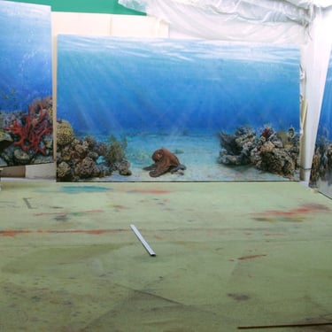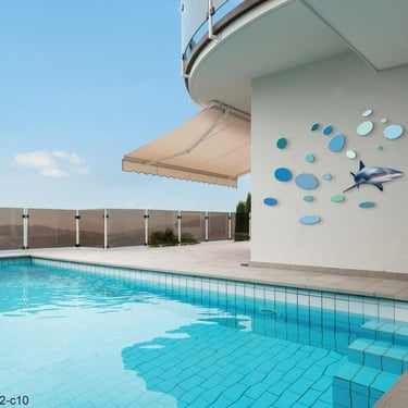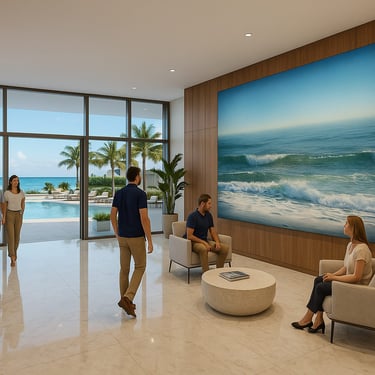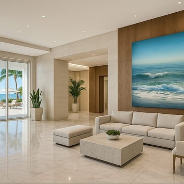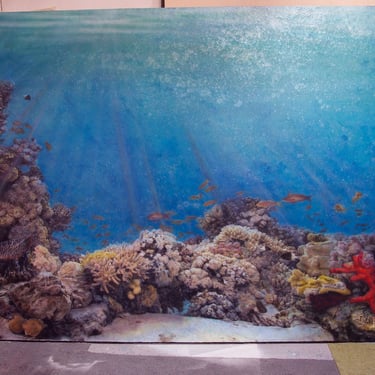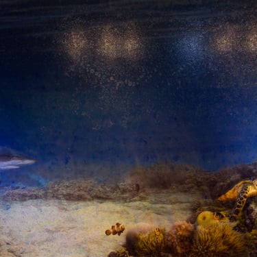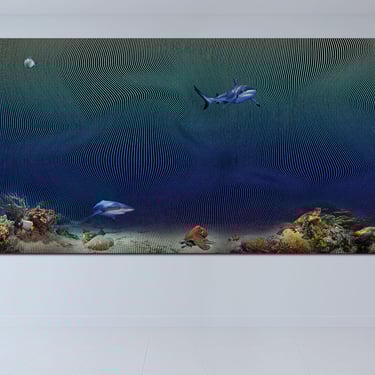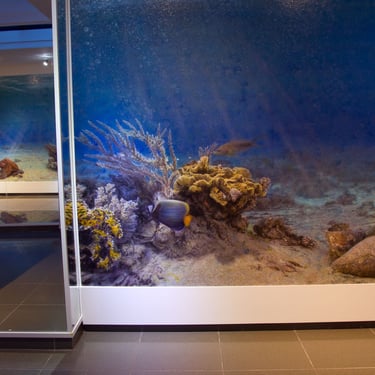 This immersive artwork brings the depth and color of the seabed into the architectural space, featuring fish, corals, and subtle underwater details.