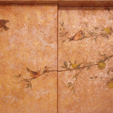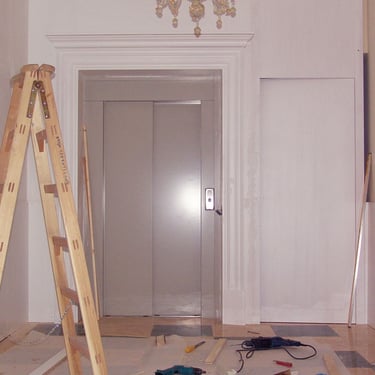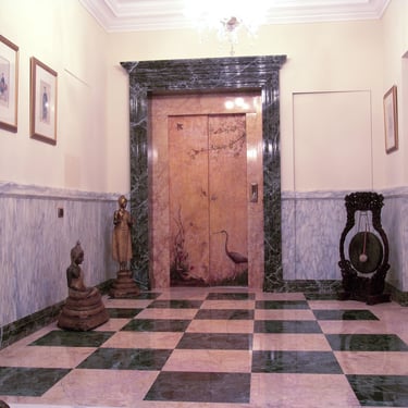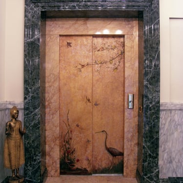The elevator doors were executed in painted decoration on gold leaf, adding a refined focal point to the space.