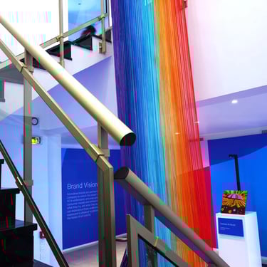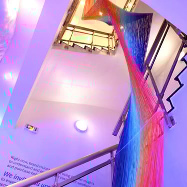 Suspended in space, these painted threads form a spectrum... not only of color, but of energy.